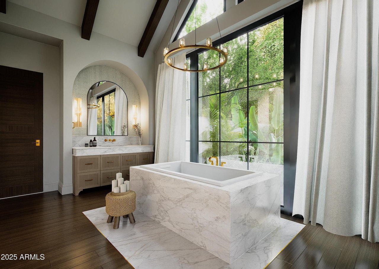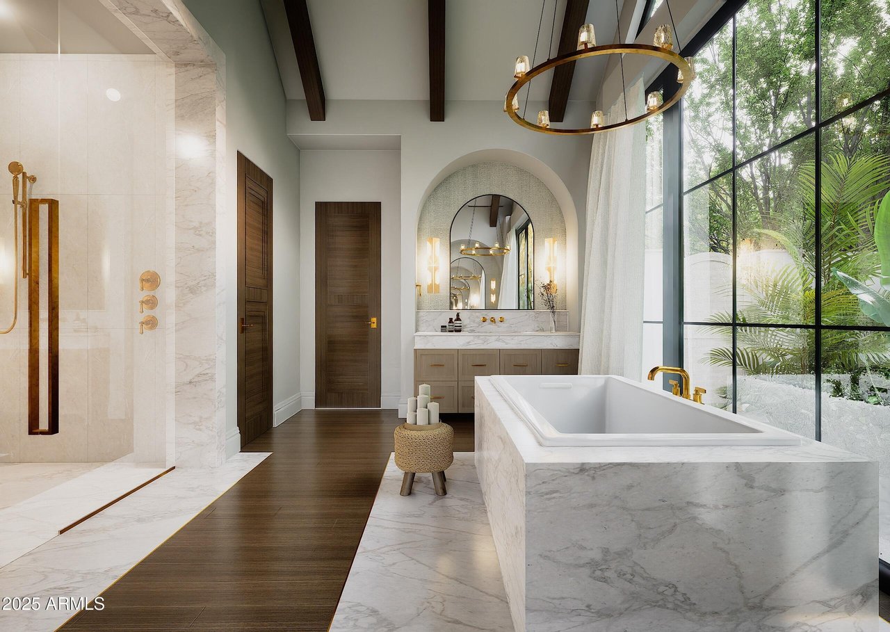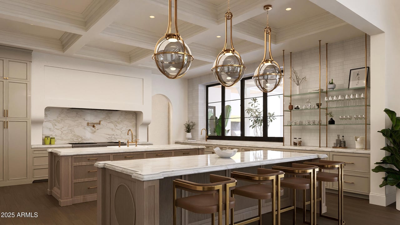 Beyond the wrought iron gate and stone pathway, the entrance will unfold into a breathtaking experience. Floor-to-ceiling windows will accentuate the meticulously layered millwork, groin vault and barrel ceilings, patterned slab stone floors, wainscoting, coffered wallpapered ceilings, and statement lightingall curated to create an immersive journey through luxury design.